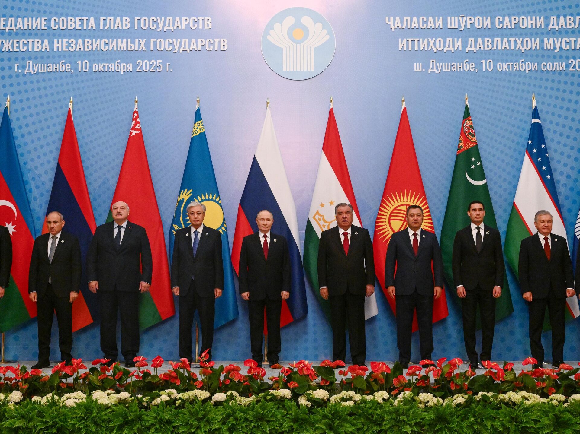 Саміт СНД праходзіць 10 кастрычніка ў Душанбэ, для ўдзелу ў яго рабоце прыбылі прэзідэнты Расіі, Беларусі, Азербайджана, Кыргызстана, Казахстана, Таджыкістана, Туркменістана і Узбекістана, а таксама прэм’ер-міністр Арменіі.
