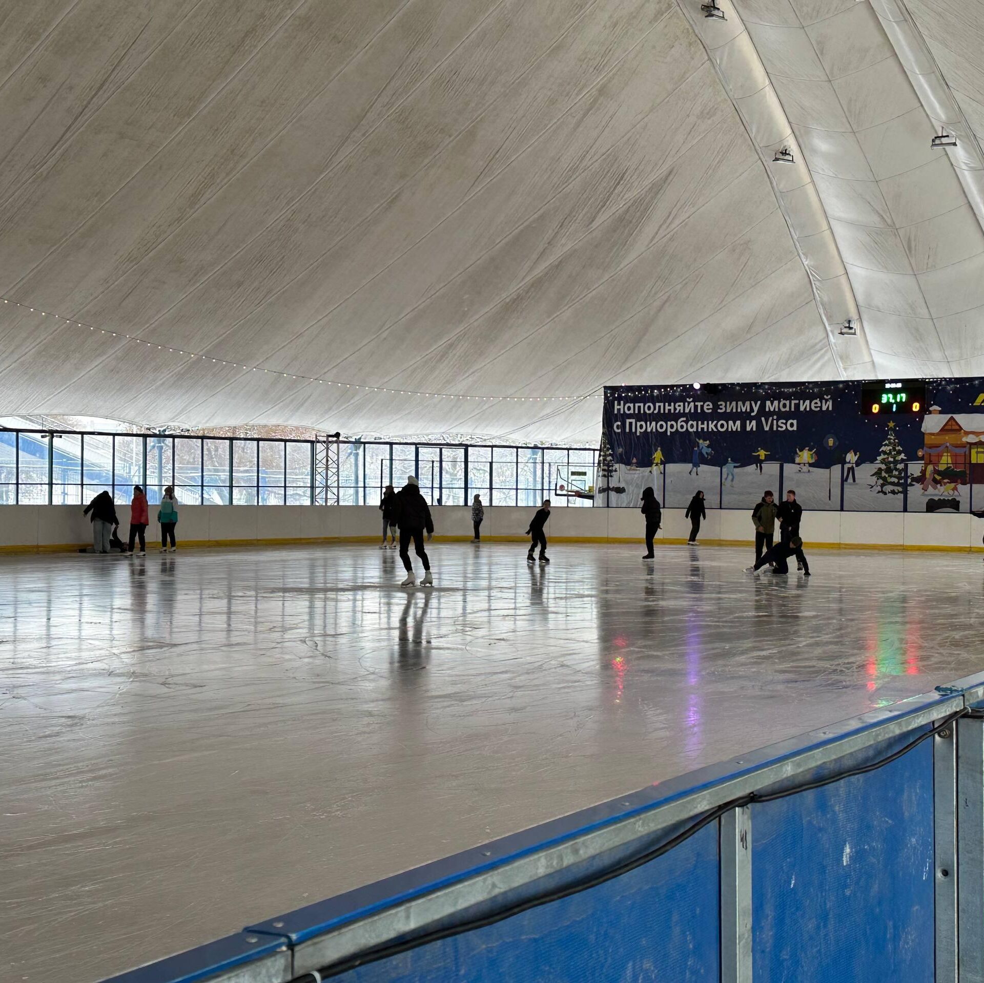 Пляцоўка адкрыта штодзень з 10:00 да 00:00, а адзін сеанс доўжыцца 45 хвілін. Пакатацца можна як на сваіх каньках, так і ўзяць інвентар напракат.