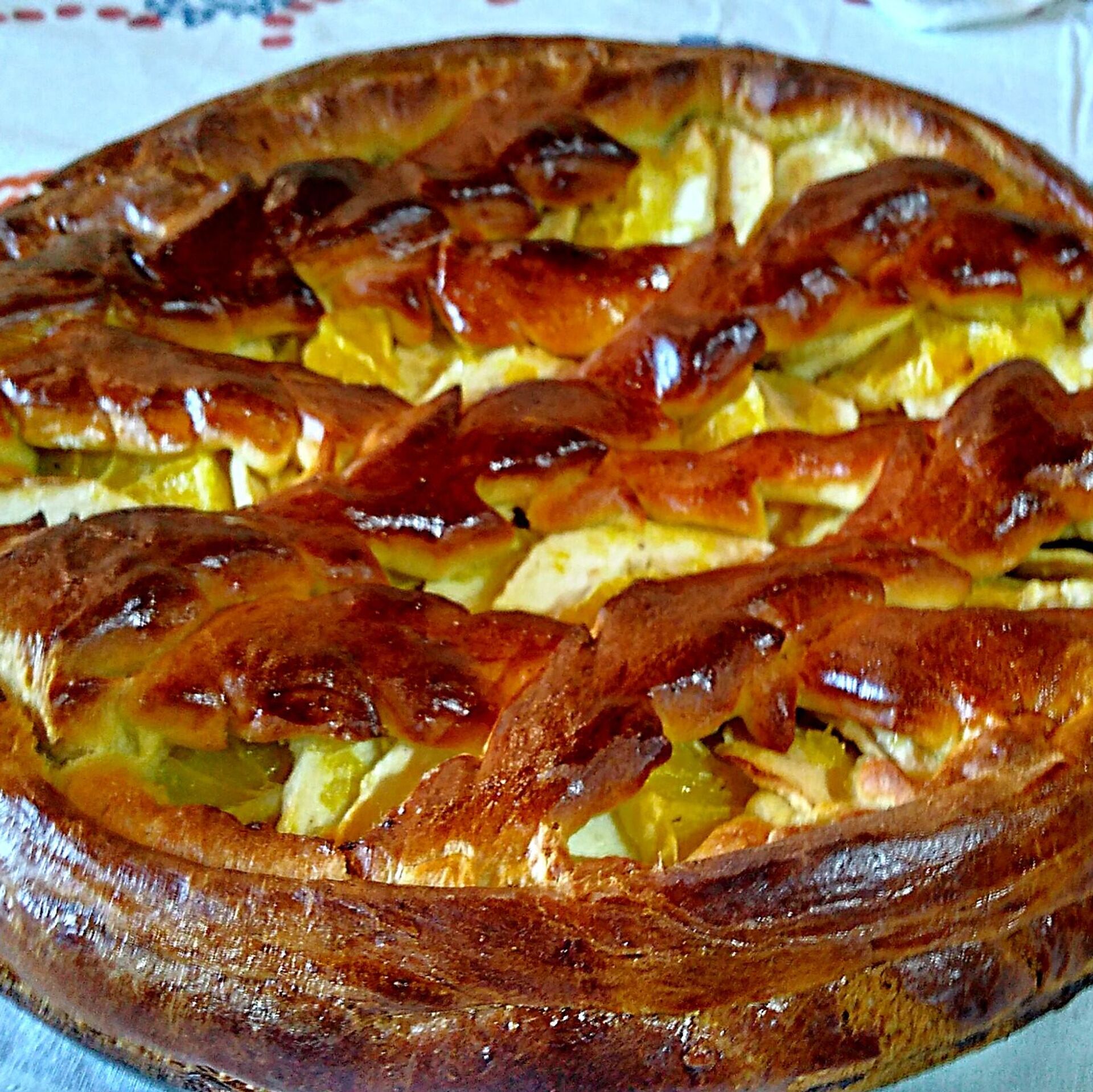Абсмажыць на алеі цыбулю і перакласці ёю выпечку. Зноў уставіць у печ (духоўку) і крыху папячы.