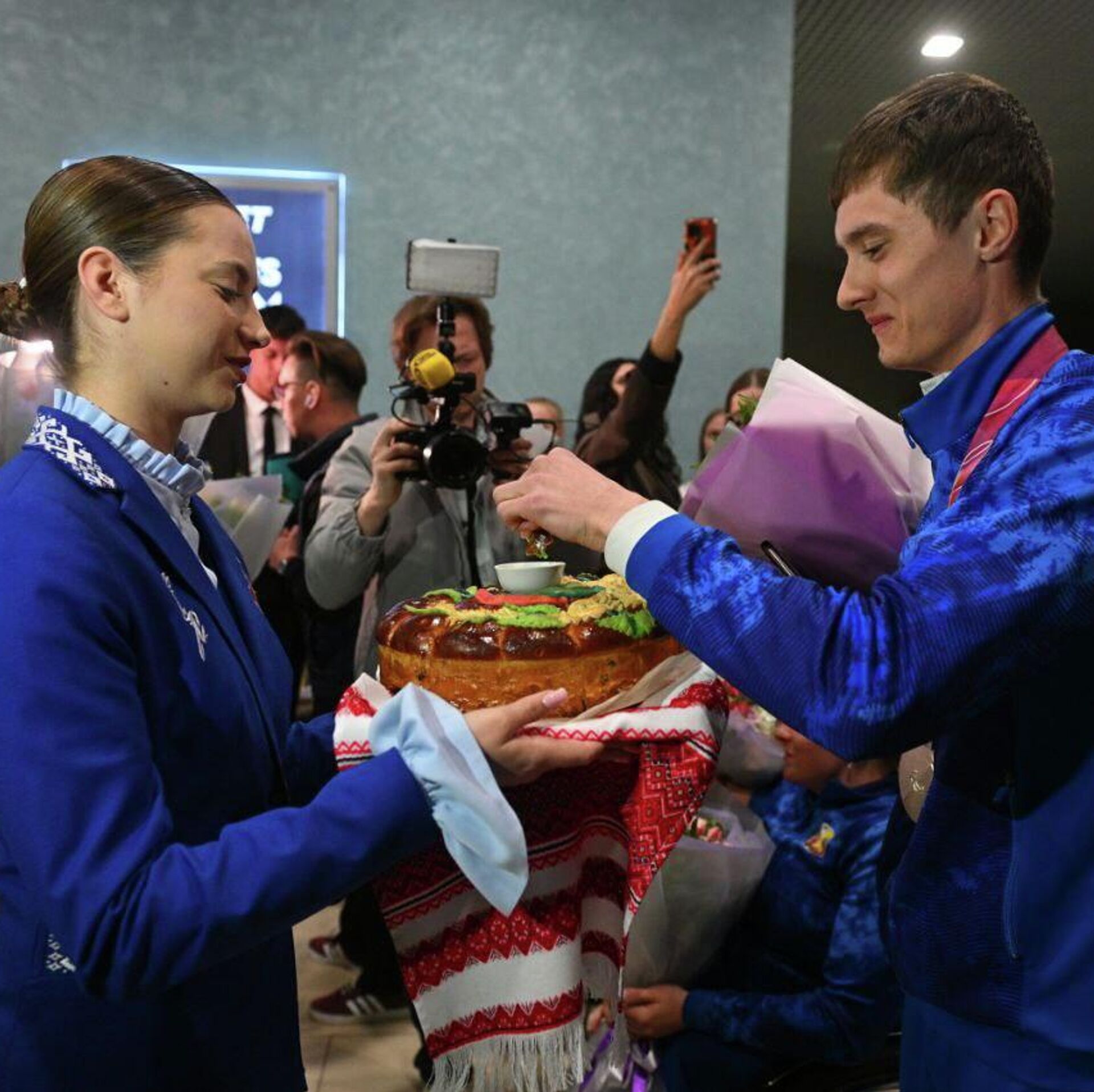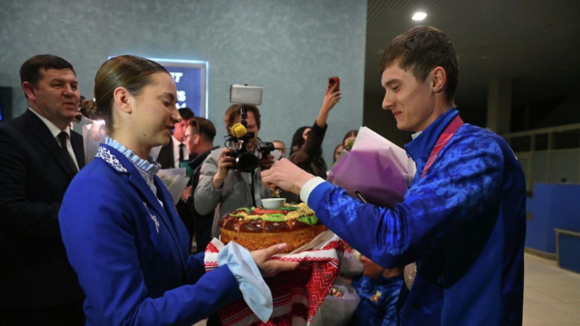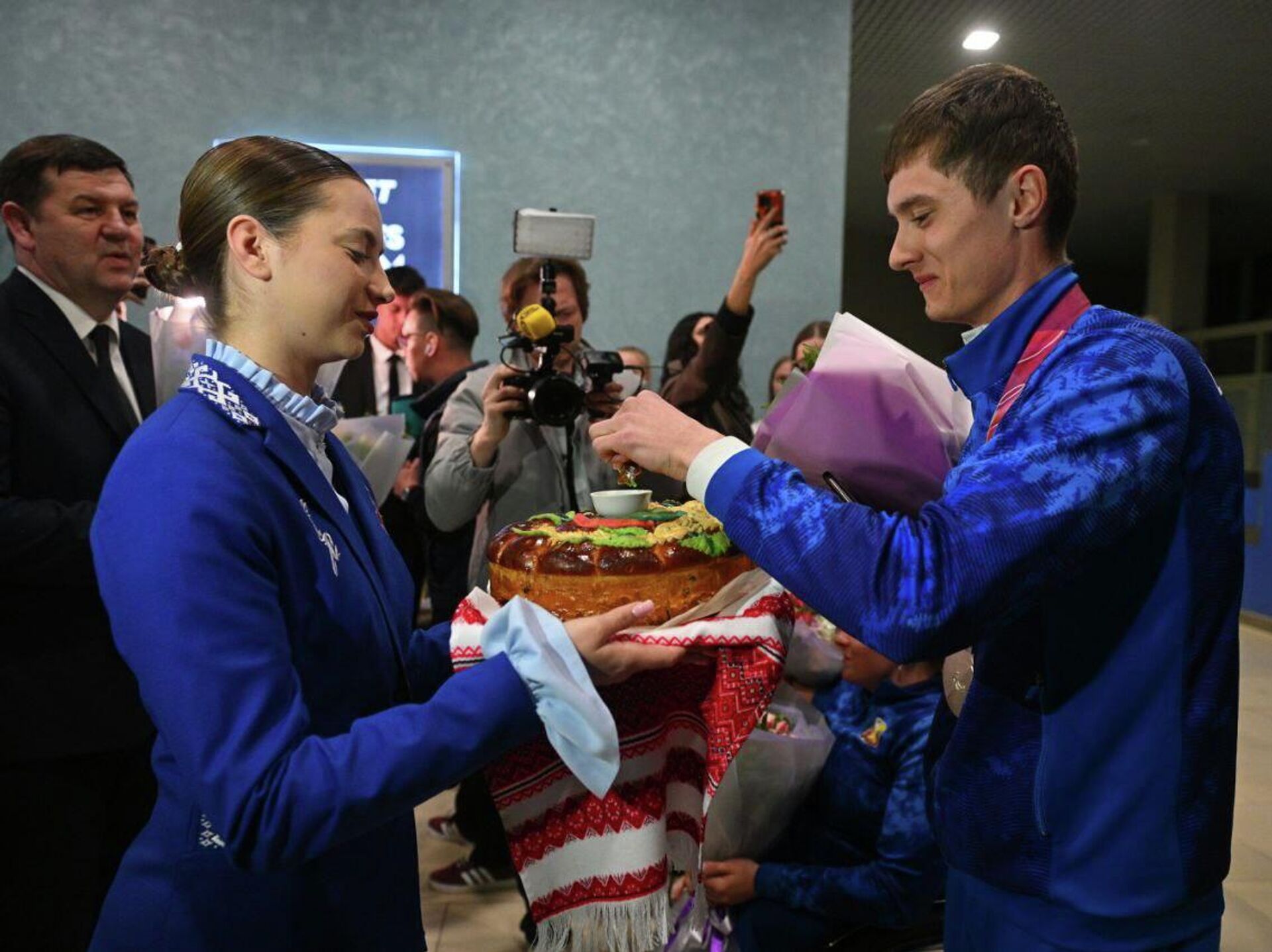 Адразу пасля прылёту Раман Свірыдзенка, Лідзія Лобан, Валянціна Бірыла і Дар’я Фядзьковіч сустрэліся з роднымі, сябрамі і балельшчыкамі, якія ўжо чакалі іх у аэрапорце з кветкамі і яркімі плакатамі.